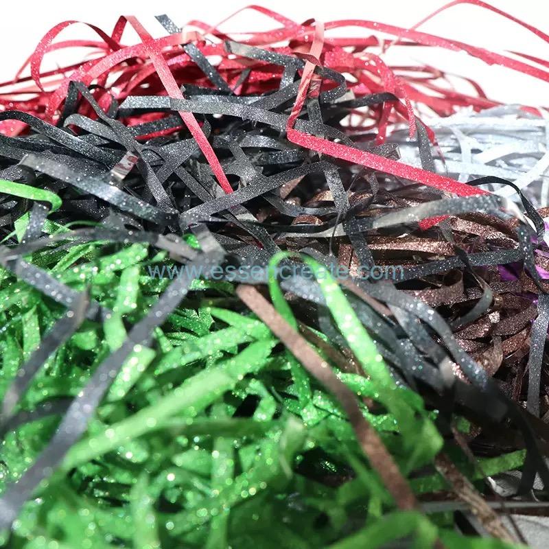 It does not rely on natural plant resources and contains no harmful additives during production, serving as an eco-friendly alternative to natural raffia. It is mainly used for filling, decorating, and protecting the inside of packaging, combining aesthetics and practicality.