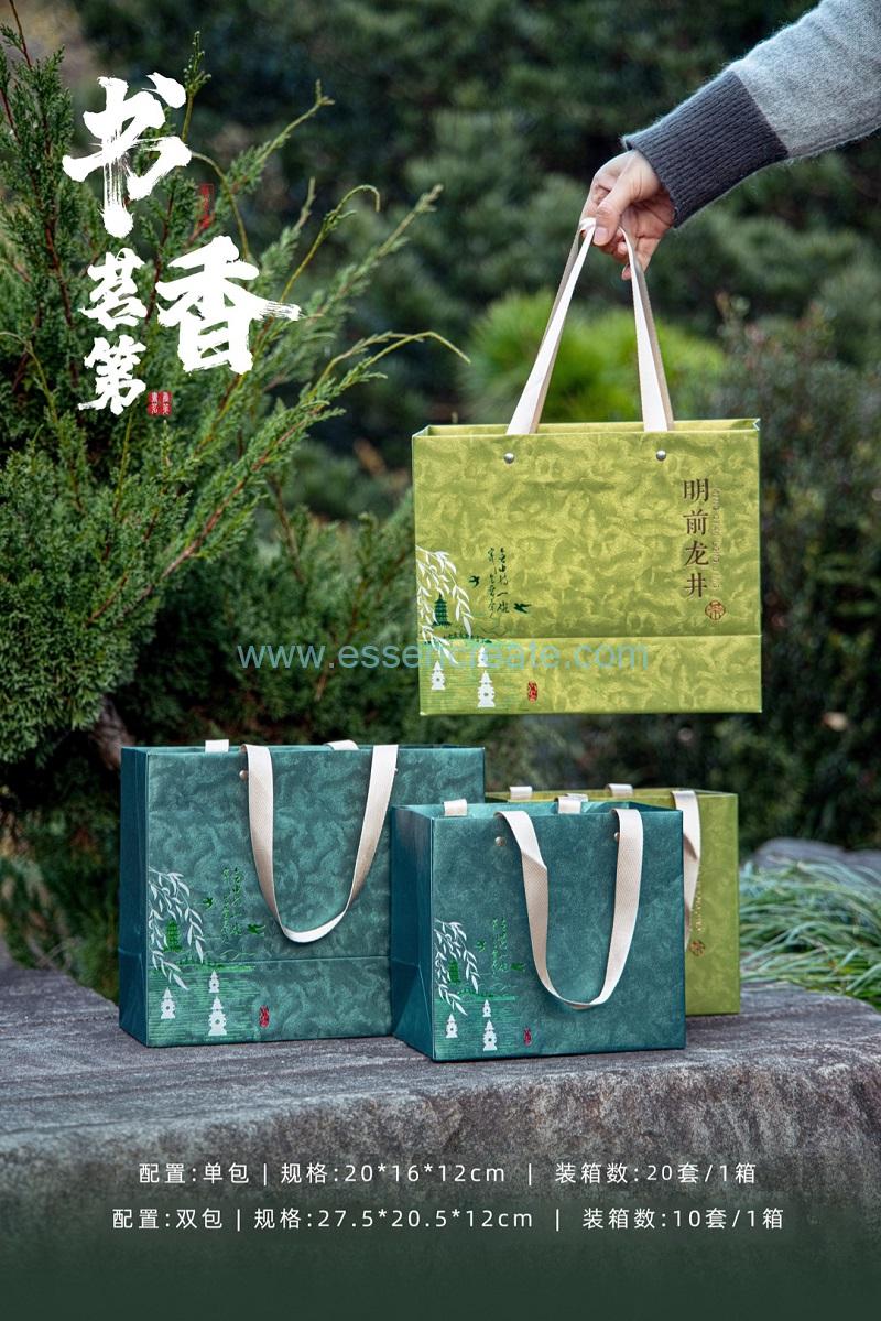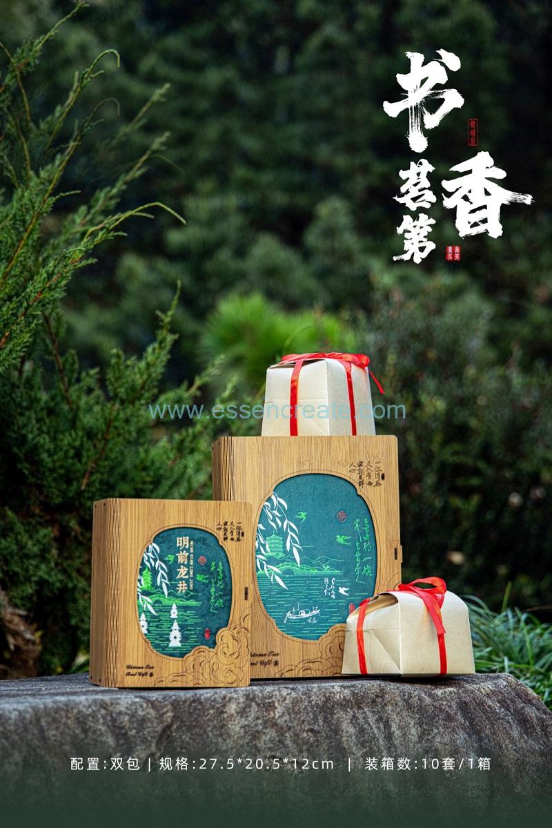 Introducing our Premium Leather-Wrapped Tea Gift Set—a masterpiece of design and functionality crafted for those who appreciate the art of tea and the power of presentation.The double-layer sealed lid with a breathable valve design not only locks in the freshness of tea, nuts and other ingredients, but also expels excess moisture for better moisture-proof and anti-oxidation effects. The can body supports logo customization via laser printing or stickers, making it highly suitable for tea shops, food brands, or as gift packaging. It is a cost-effective choice to enhance product quality.This "Shuxiang Mingdi" tea gift box features a book-shaped appearance made of bamboo-patterned wood, paired with a Chinese-style hollow window design. The gold foil "Mingqian Longjing" text and Jiangnan landscape pattern on the box surface echo each other, showing elegant Eastern charm. The gift box is available in single-pack and double-pack specifications, with shockproof lining and tea pack positions wrapped in red ribbons, which are moisture-proof and fresh-keeping, suitable for green tea, black tea, white tea and other types of tea. The matching Chinese-style tote bag has a high-end texture, suitable as a business gift or holiday tea gift. It supports bulk custom LOGO and patterns to meet branding needs.